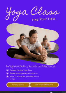 Come to our free weekly yoga class in room 34. Eibhinn returns tomorrow after the Christmas break. It begins at...