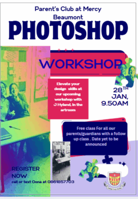 Goodmorning, we are delighted to announce that there will be a workshop on photoshop design for parents/guardians, run by our...